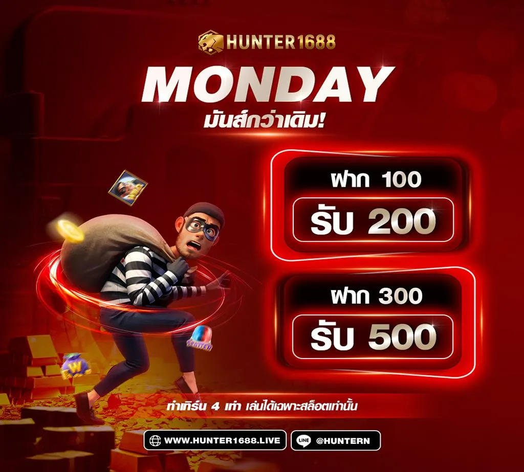 ปิดท้ายด้วยความคุ้มค่าที่หาตัวจับยาก กับการรวมตัวของสุดยอดโปรโมชั่นที่คัดมาเพื่อเอาใจสมาชิกทุกคนโดยเฉพาะ เริ่มตั้งแต่ก้าวแรกที่คุณสมัครเข้ามาเป็นสมาชิกใหม่ ก็เตรียมรับสิทธิพิเศษแบบจุกๆ กันไปเลย ทั้งโบนัสต้อนรับ เครดิตฟรี และกิจกรรมแจกของรางวัลอีกเพียบ ที่จะช่วยเพิ่มทุนในการเล่นของคุณให้หนาขึ้น ทำให้มีโอกาสลุ้นรางวัลใหญ่ได้นานขึ้นกว่าเดิม แต่ความพิเศษยังไม่หมดเพียงเท่านี้ สำหรับสมาชิกเก่าขาประจำ เราก็มีโปรโมชั่นคืนยอดเสียที่สุดแสนจะใจป๋า คืนให้แบบไม่อั้นทุกสัปดาห์ เพื่อให้คุณนำกลับไปเป็นทุนแก้ตัวและพลิกสถานการณ์กลับมาชนะได้อีกครั้ง เรียกได้ว่าเล่นกับเราไม่มีคำว่าขาดทุน มีแต่ได้กับได้ นอกจากนี้ยังมีกิจกรรมหมุนวงล้อลุ้นโชคและภารกิจประจำวันที่ทำให้การเล่นเกมของคุณสนุกตื่นเต้นยิ่งขึ้นไปอีก hunter1688 ใส่ใจและดูแลสมาชิกทุกคนเปรียบเสมือนคนในครอบครัว เราจึงไม่หยุดที่จะพัฒนาและสรรหาสิ่งดีๆ มามอบให้อยู่เสมอ หากคุณกำลังมองหาแหล่งทำเงินที่มี โปรโมชั่นเด็ด และสิทธิประโยชน์มากมายขนาดนี้ ต้องรีบสมัครสมาชิกเข้ามาด่วน แล้วคุณจะพบว่าความคุ้มค่าที่แท้จริงมันเป็นอย่างไร
